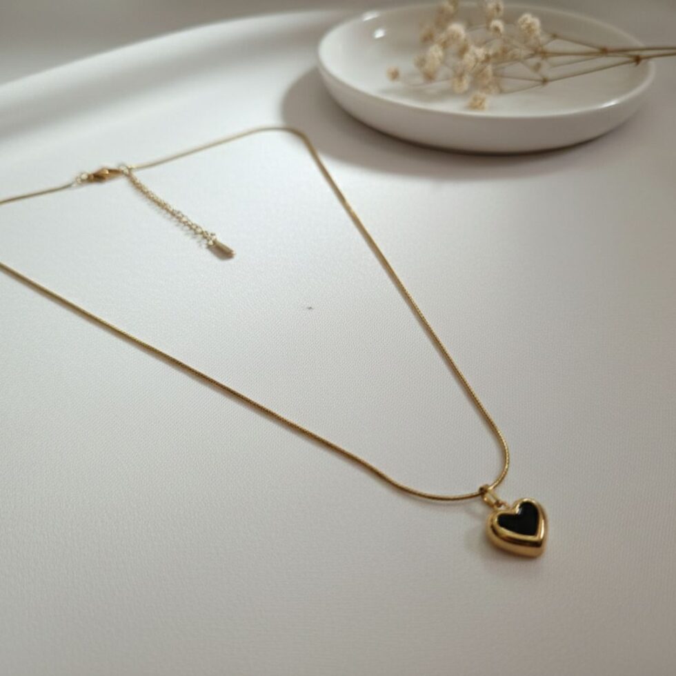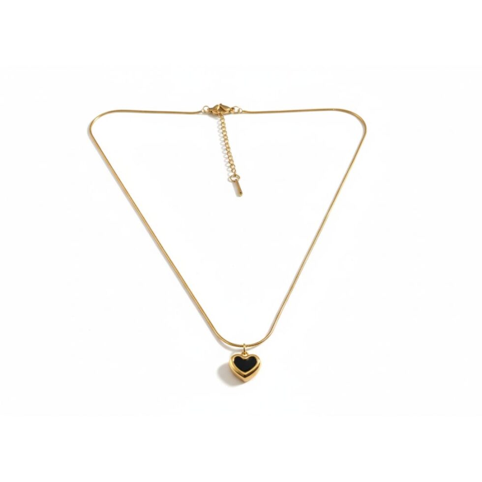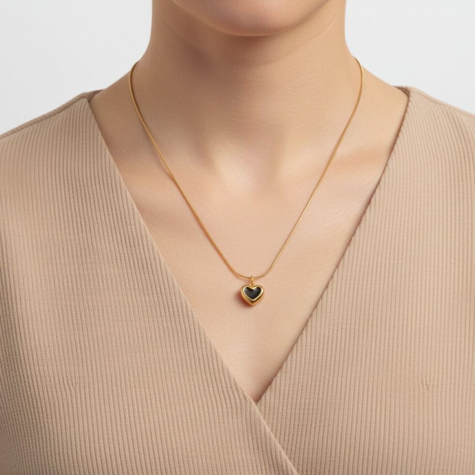 Versatile and expressive, this Beyond Basic pendant features a two-way wearable heart charm designed to match your mood and style. One side showcases a sleek black enamel heart framed with a polished gold border, while the reverse reveals a classic all-gold heart finish — giving you two distinct looks in one piece.