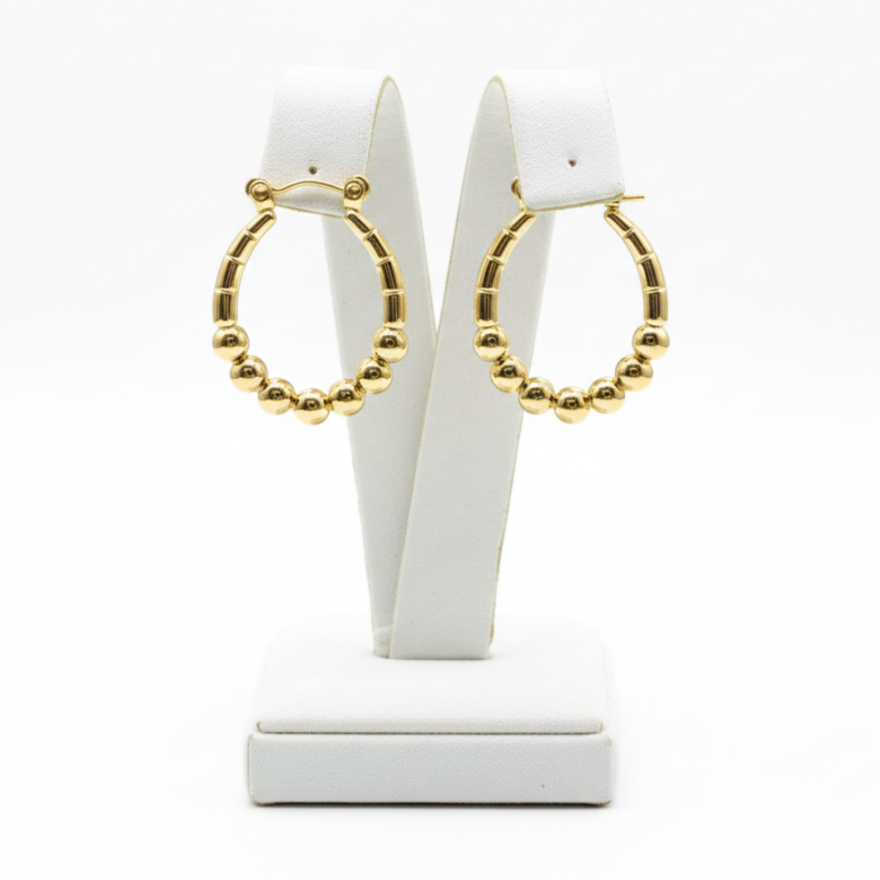 Redefine your accessory game with these Beaded Gold Teardrop Hoops. Featuring a unique, tapered silhouette that blends smooth, high-shine gold sections with bold spherical bead accents, these earrings offer a sophisticated twist on the classic hoop.