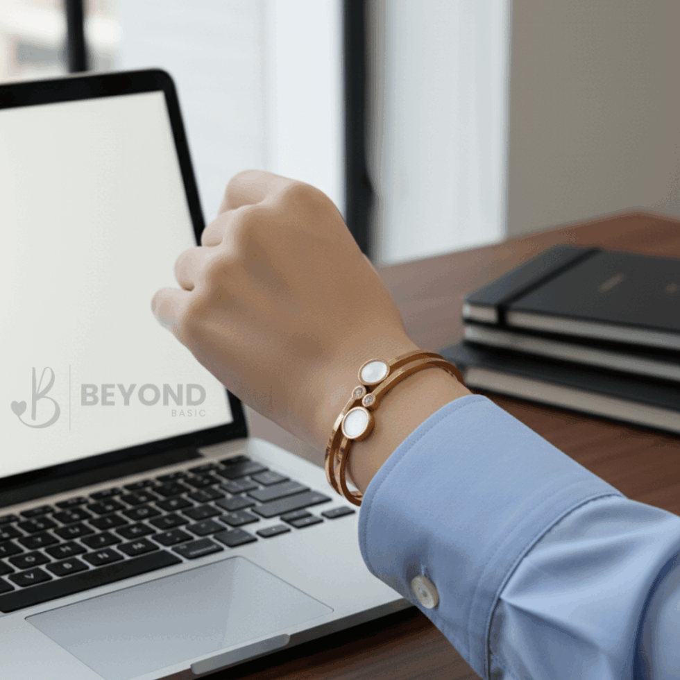 Lightweight and comfortable on the wrist, its structured yet minimal design makes it easy to style on its own or alongside your favorite bracelets. Thoughtfully finished and easy to wear, this piece reflects Beyond Basic’s approach to modern luxury — simple, versatile, and made to last.