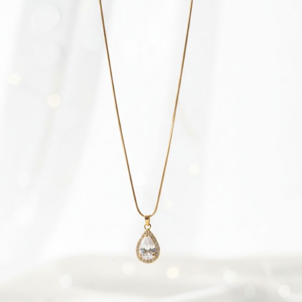 Minimal Teardrop Crystal Pendant Necklace with Gold Finish