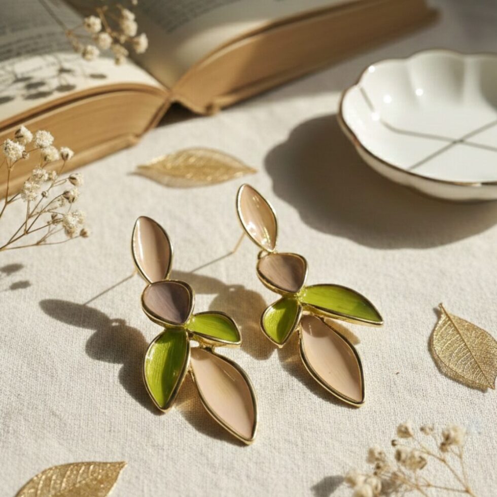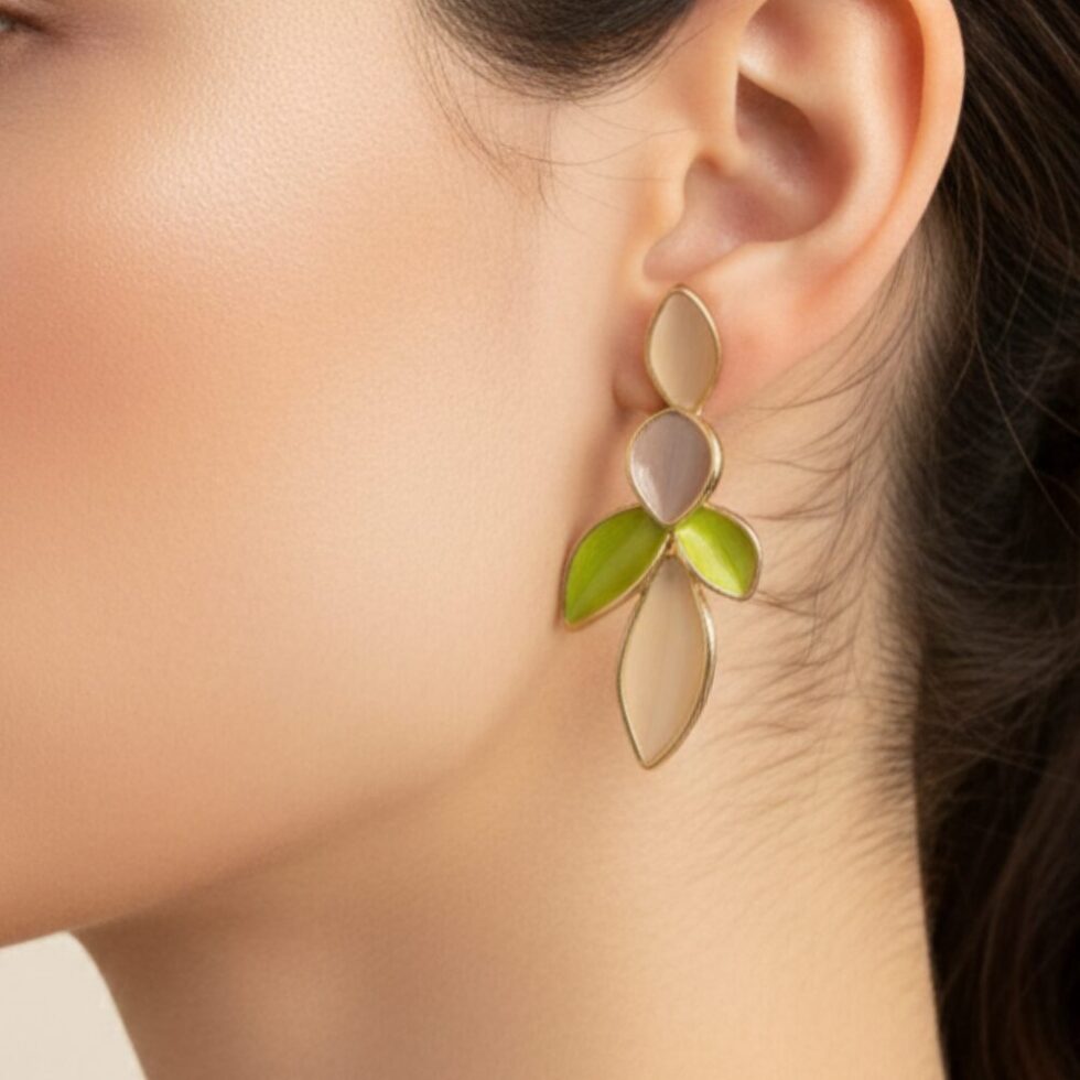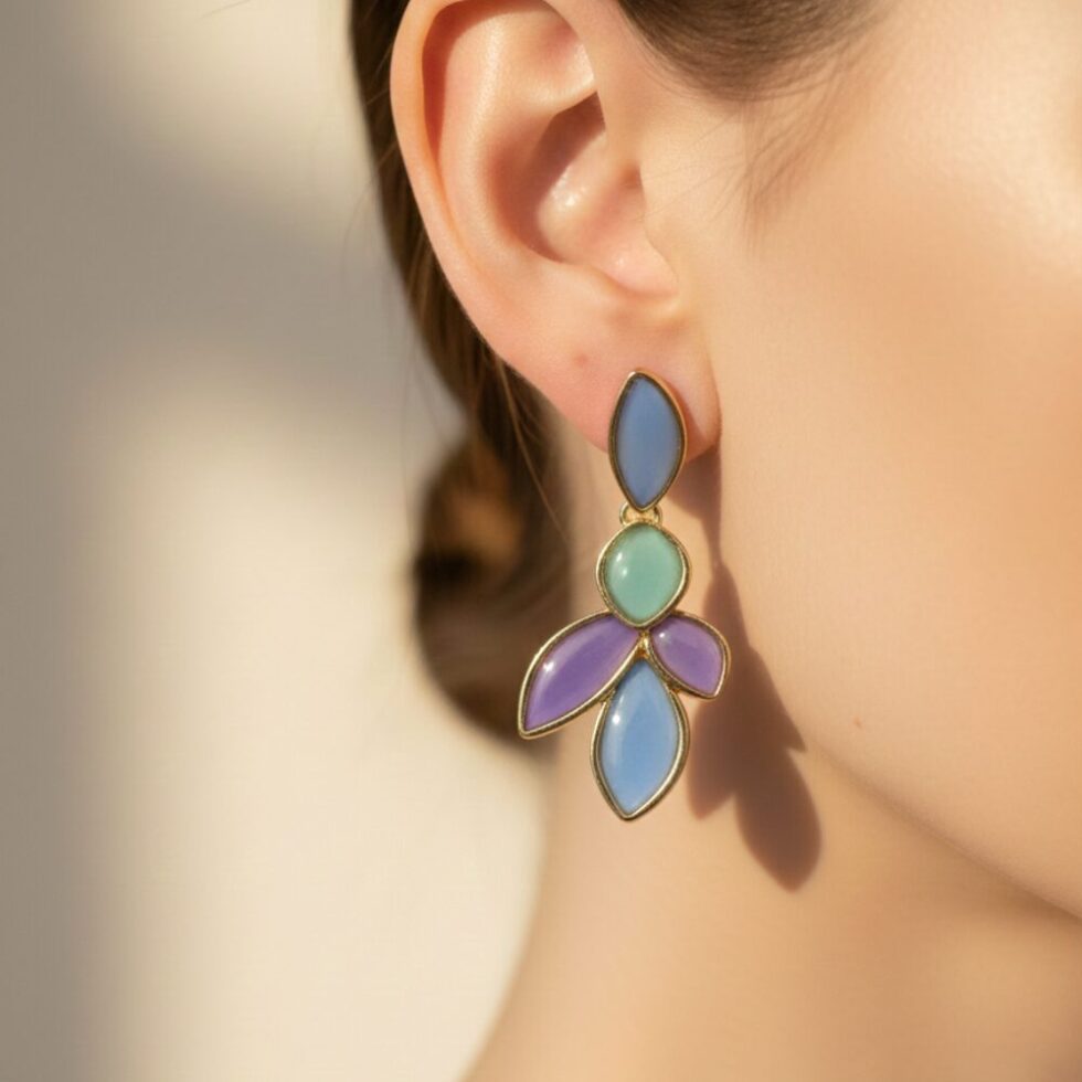 Be the first to review “Pastel Leaf Drop Statement Earrings – Multicolor Gold Finish” Cancel reply