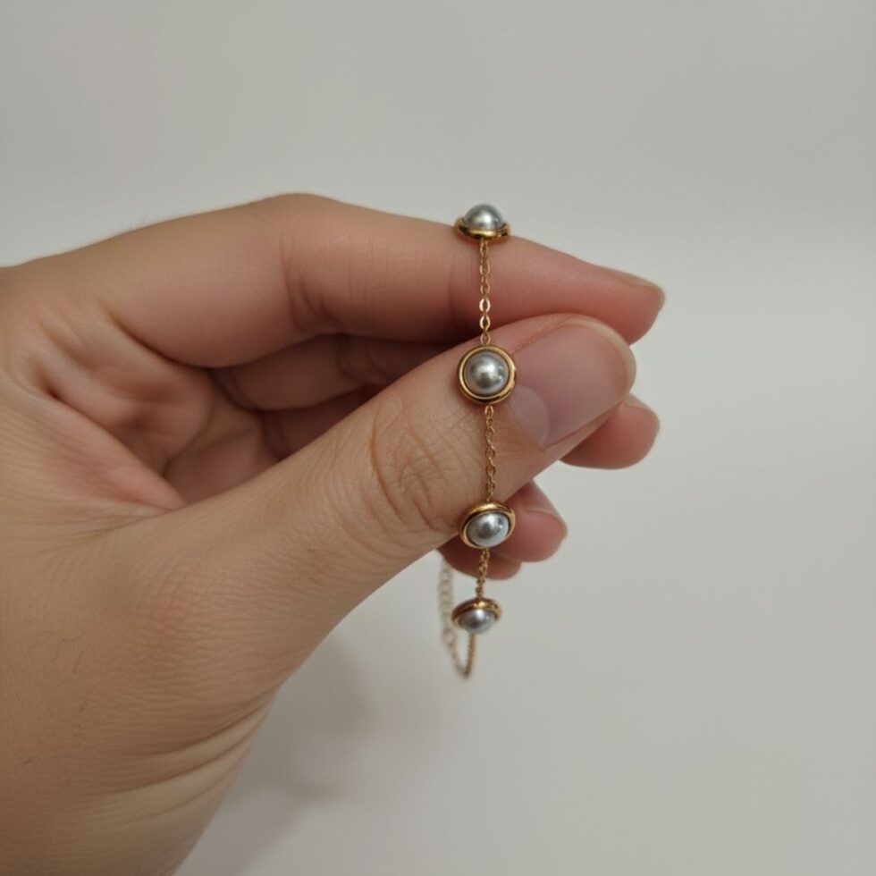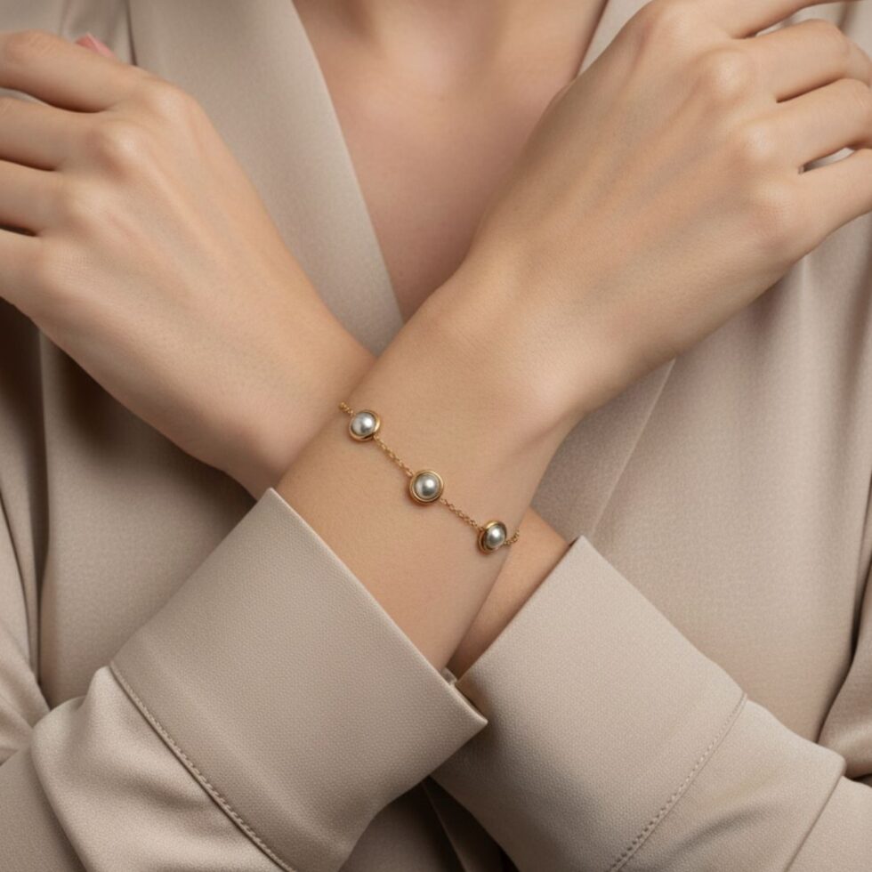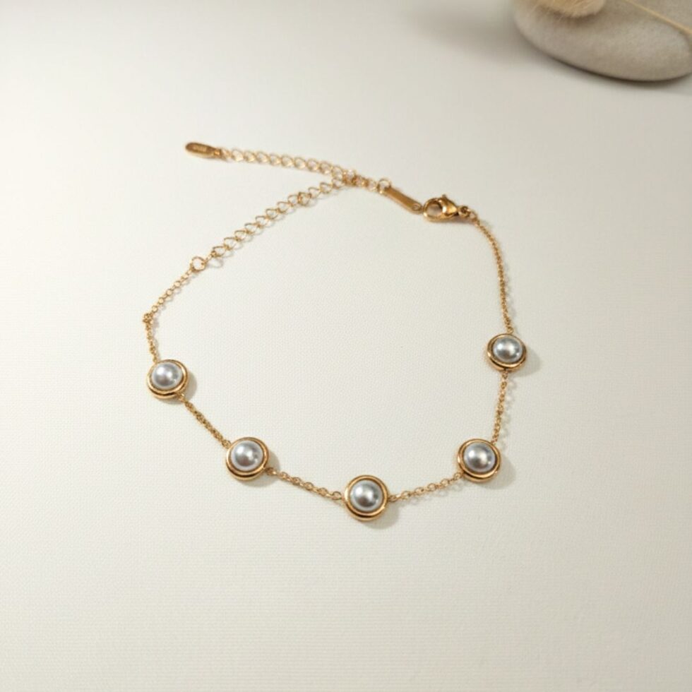 Elegant and effortlessly refined, this Beyond Basic bracelet features a fine gold chain accented with evenly spaced pearl stations in sleek bezel settings. The soft pearl glow paired with the polished gold finish creates a timeless look that feels both modern and classic.